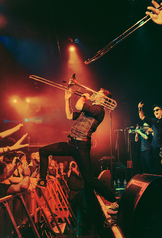 For Dutty Moonshine’s 24-date run, which spanned eight weeks at venues with anywhere from 500 to 2,000 capacity, 22live supplied N-Series handheld wireless systems fitted with DPA 2024 Cardioid and 2028 Supercardioid Vocal Microphone capsules, alongside six DPA 4099 Instrument Microphones on wireless transmitters for brass.