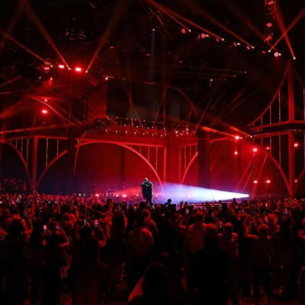 Broadcast live from the Moody Center on the University of Texas campus in Austin, performances took place inside and on an outdoor stage in front of the iconic University of Texas Tower. The lighting direction for the indoor show was by Felix Peralta, David ‘Fuji’ Convertino and Michelle Griesmer, with Han Henze and Matt Piercy handling lighting direction on the outdoor stage. The production design was by Anne Brahic, her 15th year working at the awards show.